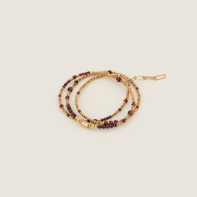 Le bracelet 3 tours plaqué or et grenat Tuna