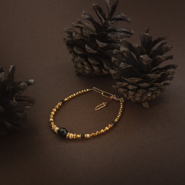Le bracelet Tuna en pierres naturelles noires et dorées