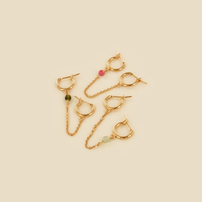 Découvez nos boucles d'oreilles pour femme en plaqué or 18 carats ou argent 925, parfois accompagnées de pierres naturelles de différentes coloris. Nos bijoux Les Touquetoises sont dessinés et assemblés à la main dans notre atelier au Touquet.