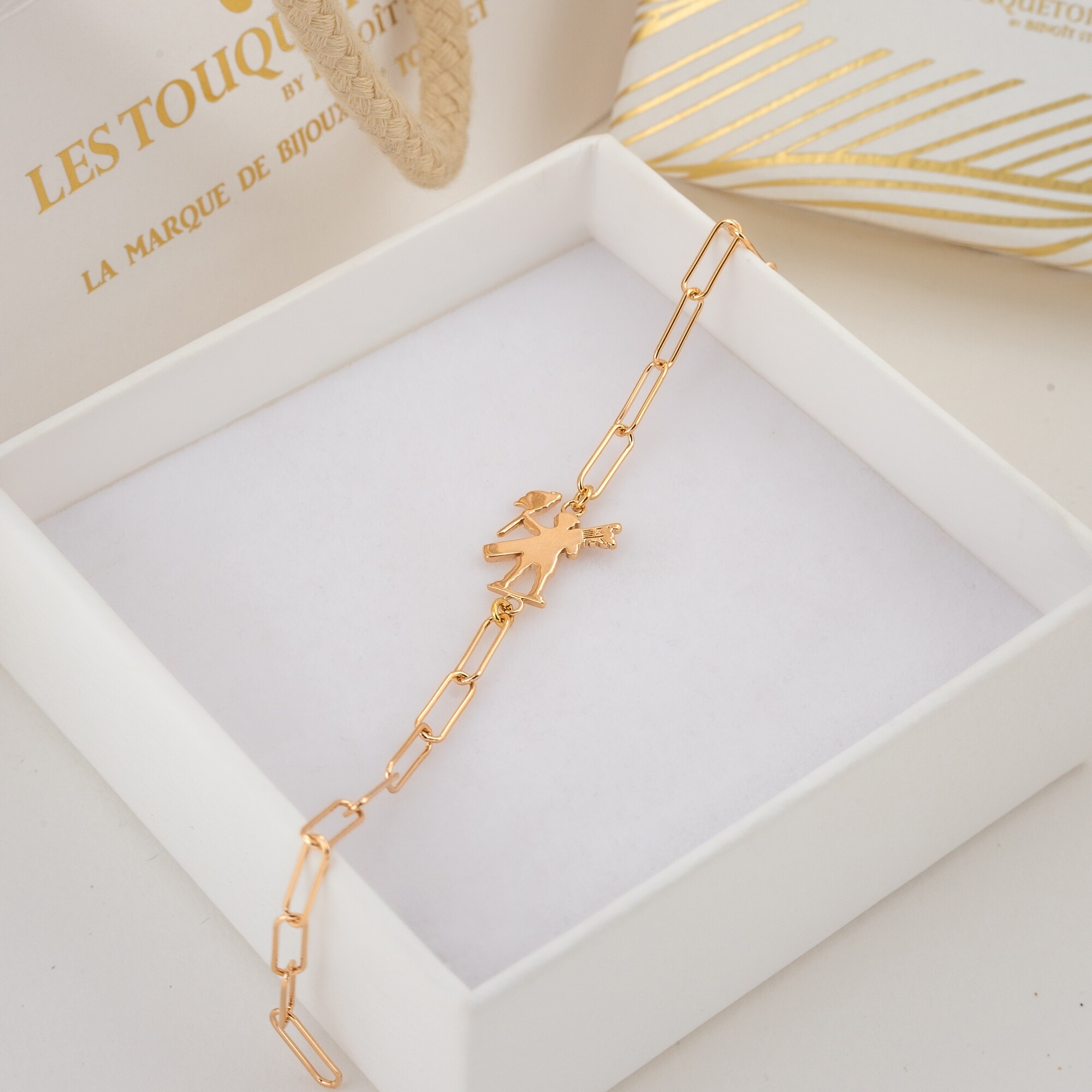 Découvrez le bracelet plaqué or Achille. Un bracelet en maille trombone et le logo icônique de la ville du Touquet-Paris-Plage qui vous rappelera votre été au Touquet.