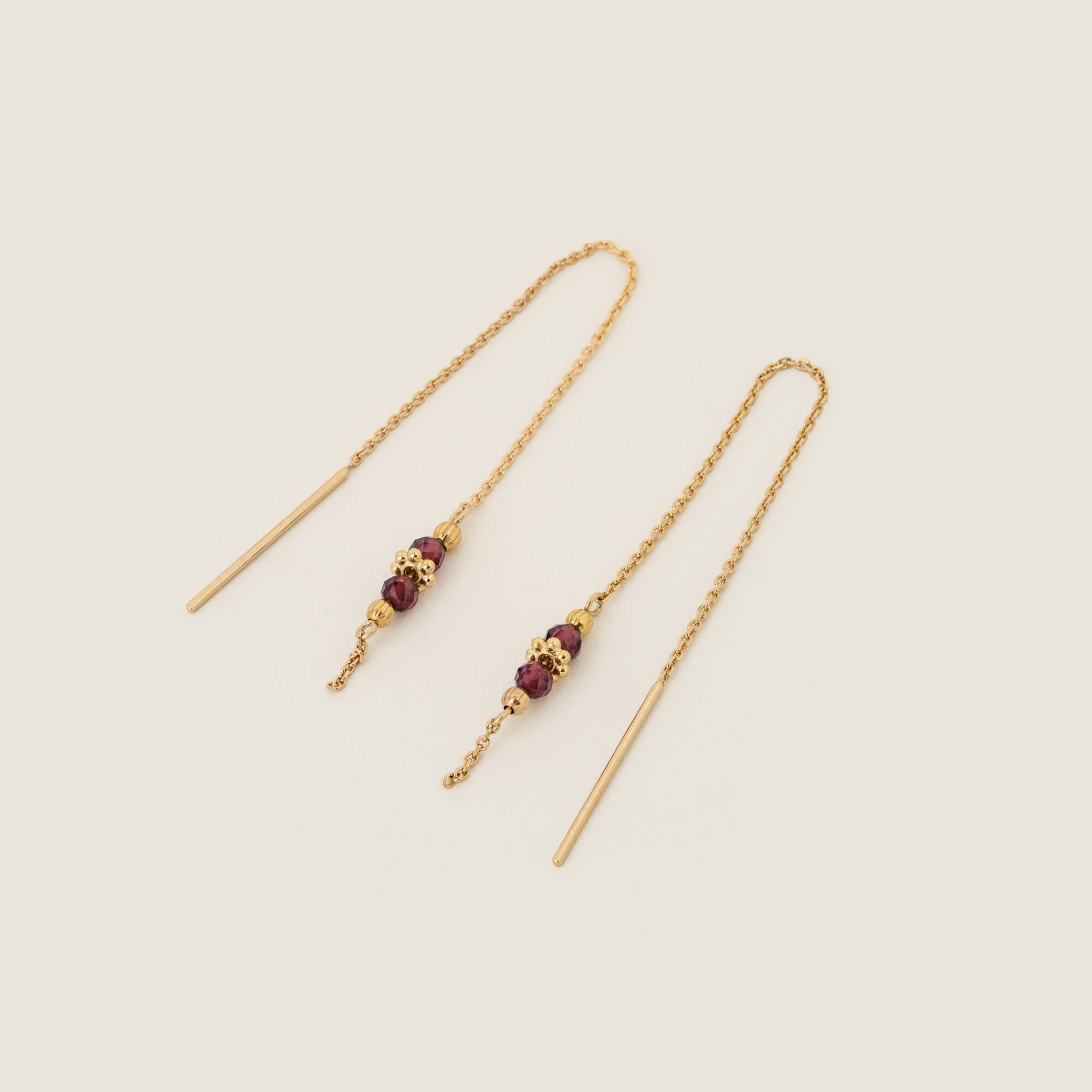 Référence : EDENGRENAT_BO_PORDécouvrez les boucles d'oreilles longues en plaqué or et grenat Eden